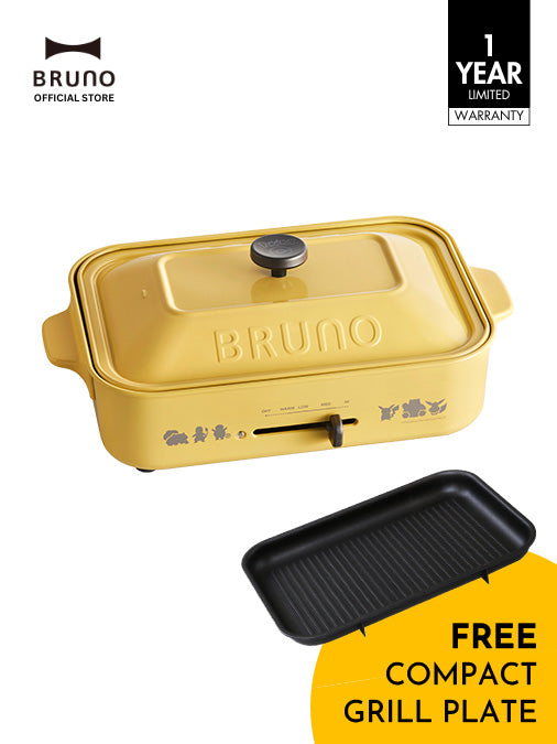 The yellow BRUNO Pokémon Compact Hotplate is a playful classic adored by fans of fun and food alike. Cheerful and versatile in any home or kitchen, its bright Pokémon‑inspired design brings a spark of joy while letting your delicious creations take center stage! With multiple heat settings from 65ºC to 250ºC, you can grill, bake, or simmer a variety of dishes—all while staying comfortably at your dining table. * Get a FREE Bruno Pokémon Multi Plate v2 worth RM209 with every purchase! * Compact Hotplate comes with the Flat Plate & Pokémon Cake Plate * Rest of the attachments are sold separately