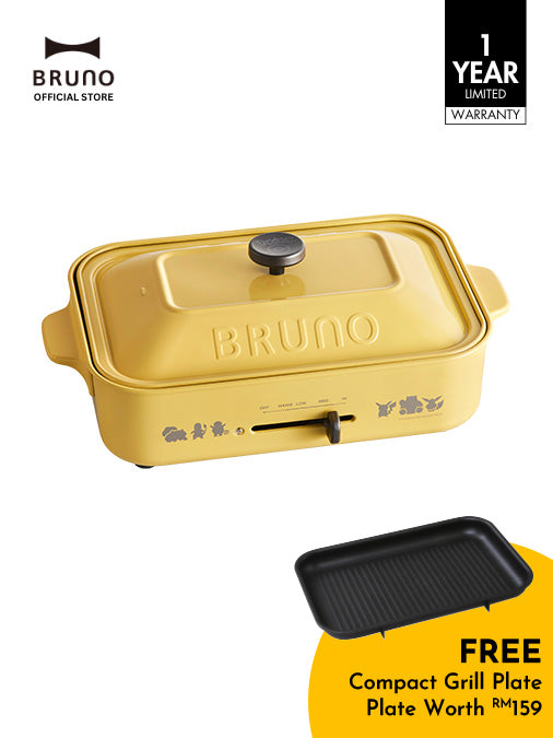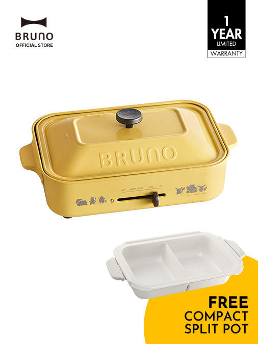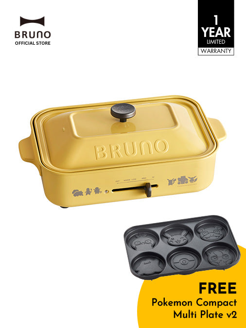 The yellow BRUNO Pokémon Compact Hotplate is a playful classic adored by fans of fun and food alike. Cheerful and versatile in any home or kitchen, its bright Pokémon‑inspired design brings a spark of joy while letting your delicious creations take center stage! With multiple heat settings from 65ºC to 250ºC, you can grill, bake, or simmer a variety of dishes—all while staying comfortably at your dining table. * Compact Hotplate comes with the Flat Plate & Pokémon Cake Plate * Rest of the attachments are sold separately