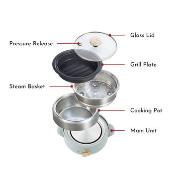 Swap the included plates to prepare a variety of dishes: hearty mains, light sides, healthy steamed meals, sweet treats, or sizzling snacks. This multi-use pot helps you enjoy comforting, homemade food all year round.