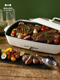 Take your gatherings to the next level with the BRUNO Grande Grill Plate Attachment — perfect for cooking steaks, seafood, and party platters right at the table.